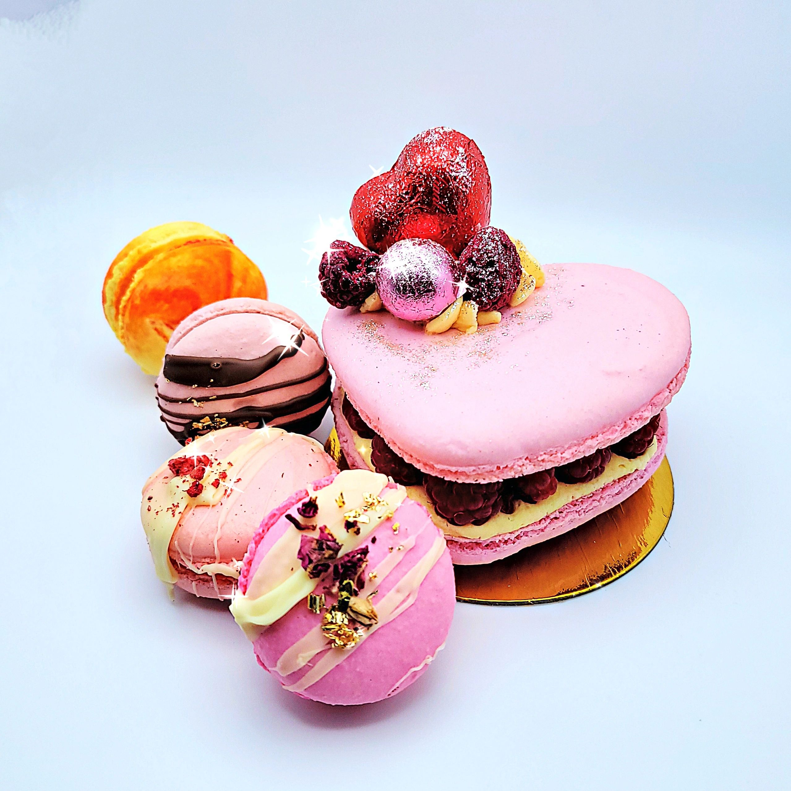 Valentine's box includes Macaron cake with 5 regular sized macarons. ♥ Flavors may be chosen from any of the valentines and regular flavors.